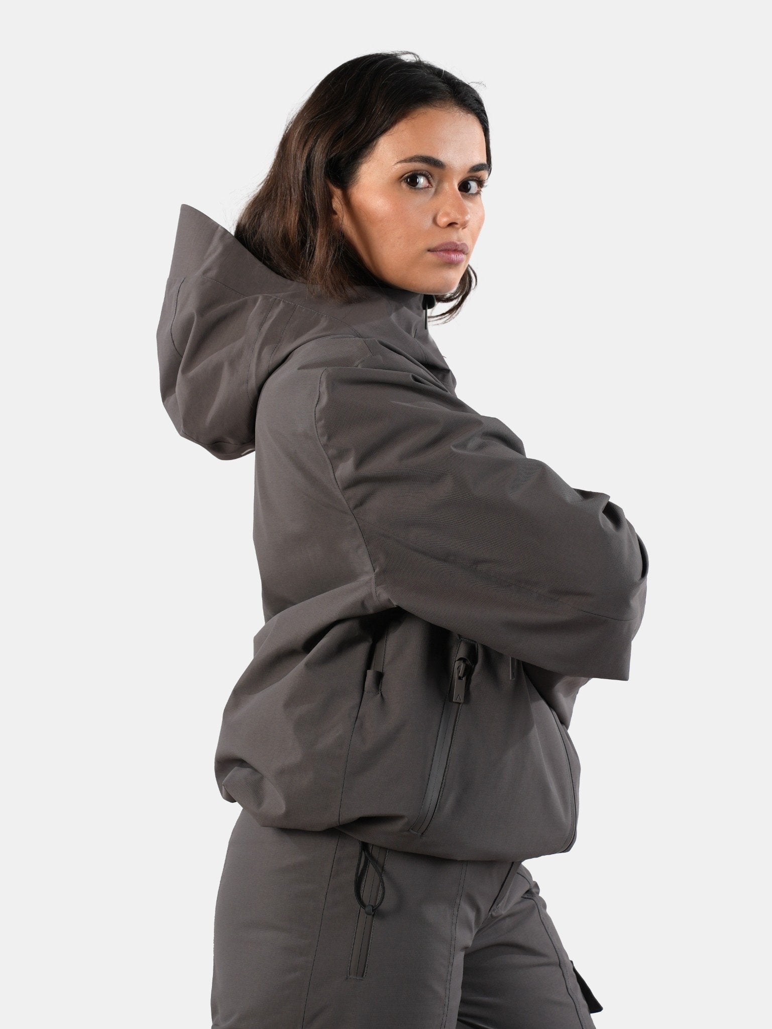 A baggy hardshell ski jacket with an elastic hem for tucked or relaxed fit. Wear it in your way - no matter how, it always gives the same effortless cool vibe. The jacket features all the details you need for a full day on the slopes.